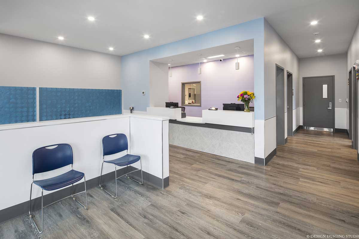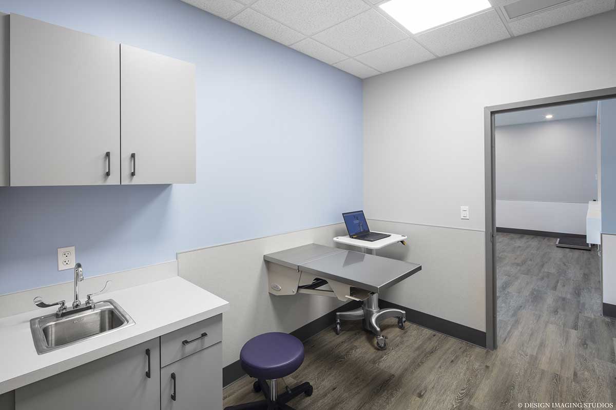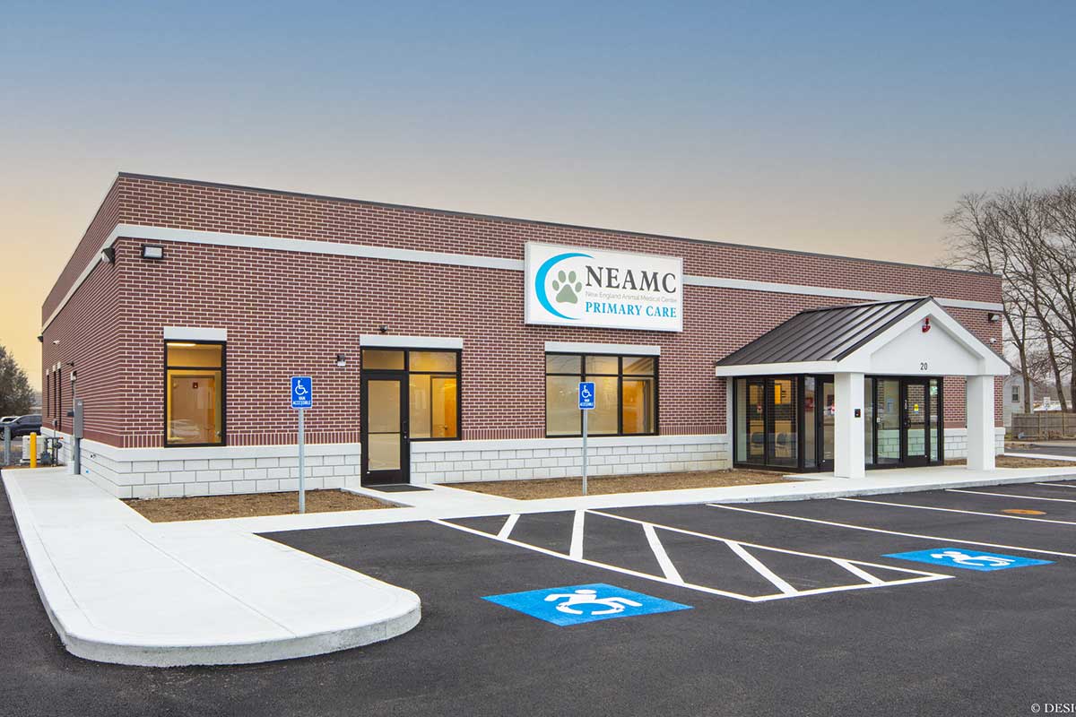 New construction of a 6,000 SF ground-up veterinary medical center in West Bridgewater featuring treatment rooms, a surgery center with recovery rooms, an x-ray room, dental treatment space, administrative offices, and a spacious reception and waiting area.