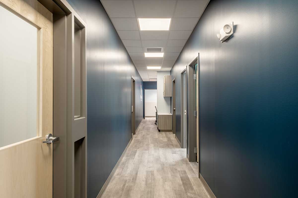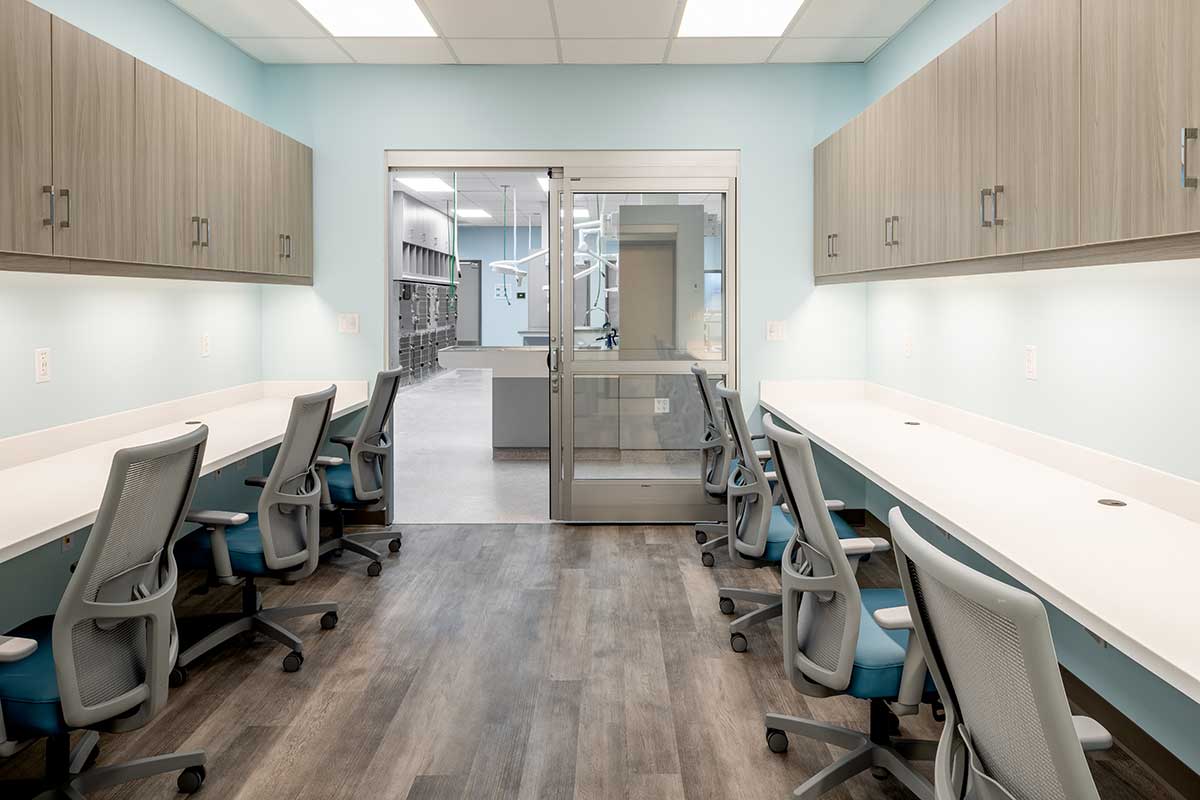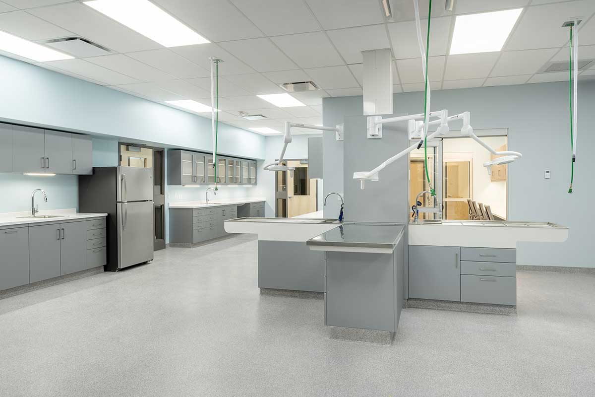 New construction of an 8,500 SF ground-up veterinary hospital featuring a spacious reception and waiting lobby, ten exam rooms, dedicated treatment, dental, and surgical suites, and an open-play daycare area designed to support safe, supervised activity for pets.